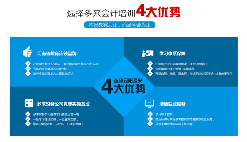 安陽市多來會計服務(wù)有限公司是由河南多來教育集團和河南因心財務(wù)之家領(lǐng)導(dǎo)下首創(chuàng)一站式會計培訓(xùn)、企業(yè)注冊、代理記賬、商標(biāo)注冊、品牌策劃營銷等于一體的多元化企業(yè)會計服務(wù)平臺。致力于為中小型企業(yè)服務(wù),資源整合,培訓(xùn)出會計人才,為中原崛起助力、打造河南具影響力的企業(yè)服務(wù)平臺。